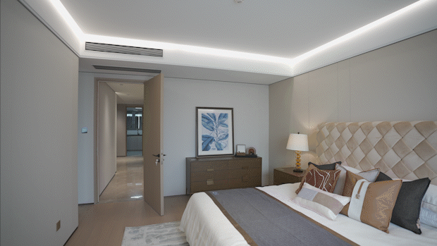 该户型主卧整体足足有约5.9米的南向开间,比客厅还要开阔。这在整个豪宅领域都是极为少见的!