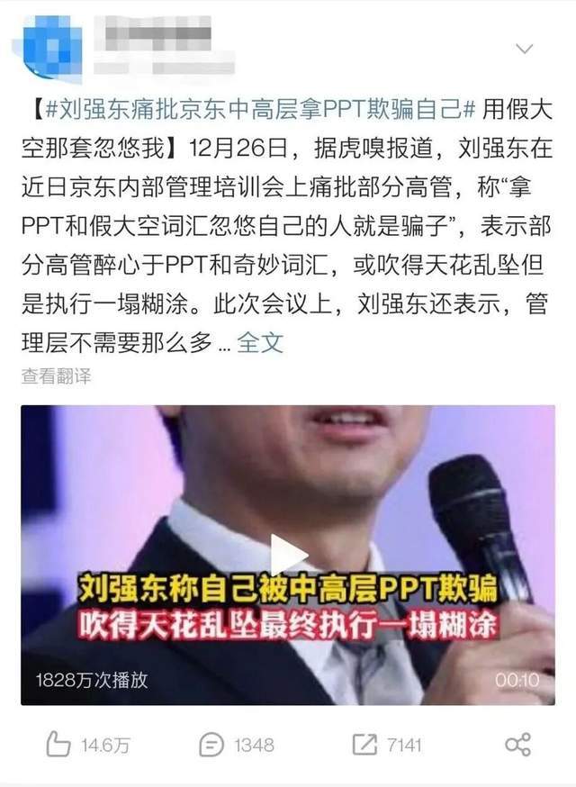2022年末,刘强东在京东内部管理培训会上痛批部分高管,称他们“拿PPT和假大空词汇忽悠自己的人就是骗子”,这一事件成了这家电商巨头管理层震荡的导火索。
